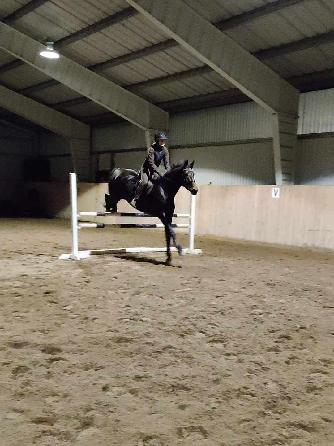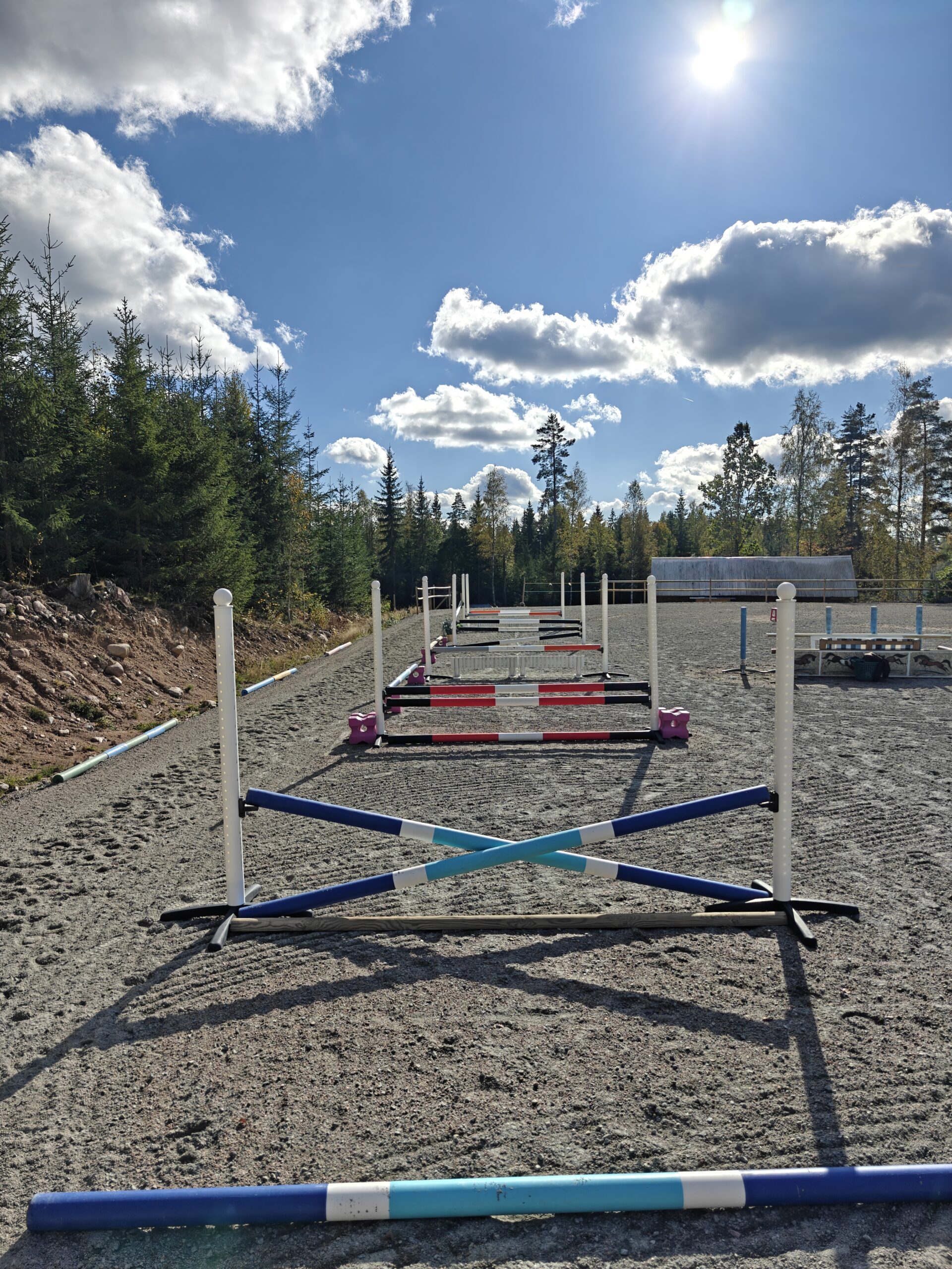 Hoppträningen igår gick bra. Mycket bättre än sist. Ida var mycket mer avspänd. Hon var mer runt skänkarna och genomsläpplig. Förra gången var hon stressad eftersom att det var hennes första hoppträning i grupp på över ett år, så det kändes skönt att hon var mer bekväm igår. Jag är väldigt nöjd med henne. Hon kändes bra på när jag värmde upp på marken och så småningom över hinderna. Däremot så fick vi inte riktigt till bomövningen som vi gjorde lite längre in i uppvärmningen. Där kunde jag känna att hon fortfarande ”höll lite på sig”. Hon ville räta ut sig och hade svårt att bibehålla arbetet före, över & efter bommarna. Hon är inte rädd för bommarna och det är inte svårt att komma rätt, men det blir lite ryckigt. Vi tappar arbetet och ”hjulet tuggar inte riktigt runt” över bommarna om ni förstår vad jag menar. Det var en sådan övning som jag vet att vi skulle kunna göra riktigt bra hemma, men med en gnutta extra spänning så gjorde det att vi inte riktigt kunde rida den som jag hade hoppats. Men det är sådant som kommer att bli bättre ju mer jag & Ida kommer iväg och tränar på bortaplan.