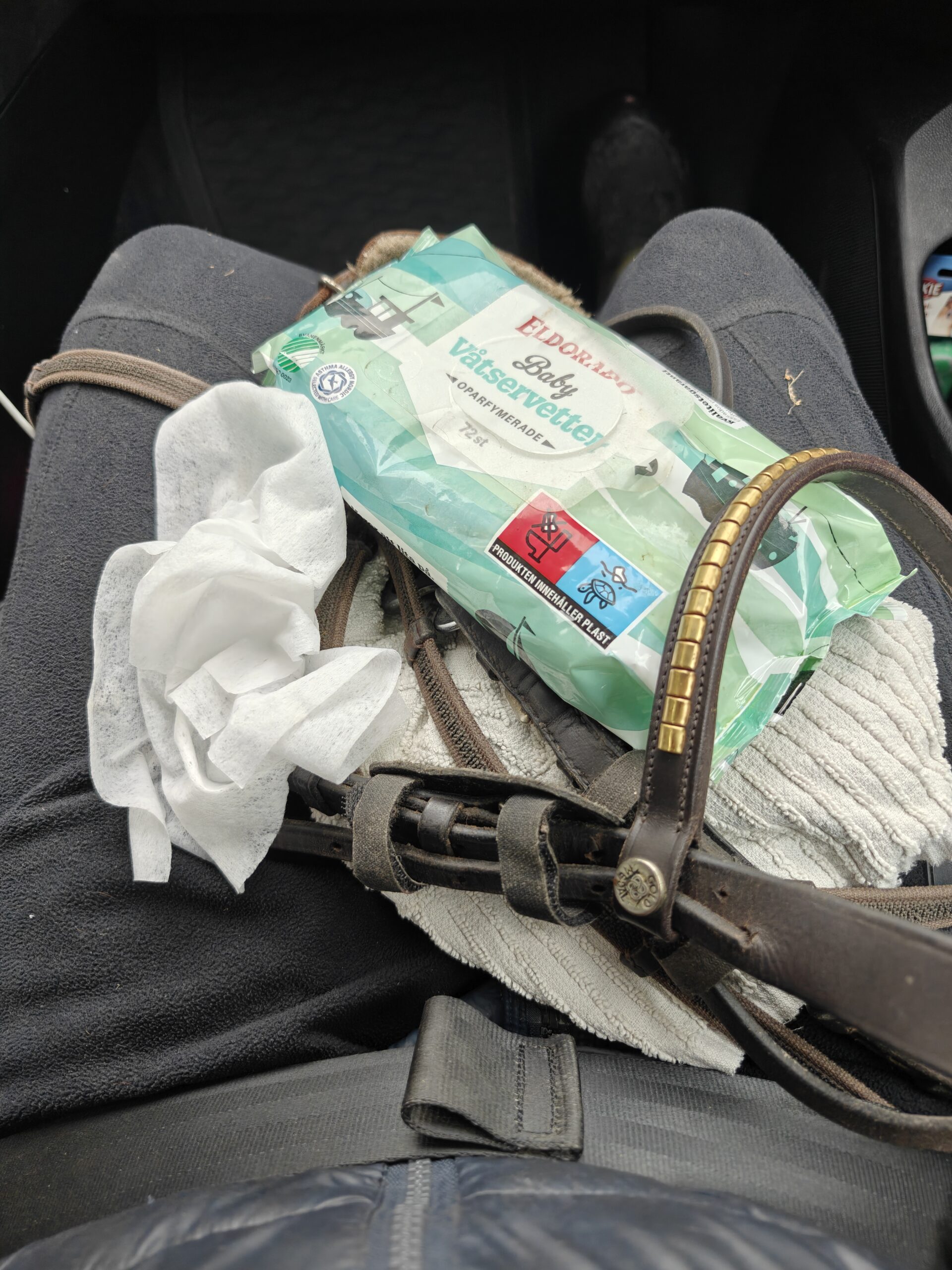 Jag upptäckte detta sår väldigt sent. Så 7 minuter innan avfärd så fick jag packa om lite utrustning, borsta Palle i raketfart och kolla med Jönköping att det var OK att göra ett hästbyte. Det var det🙏