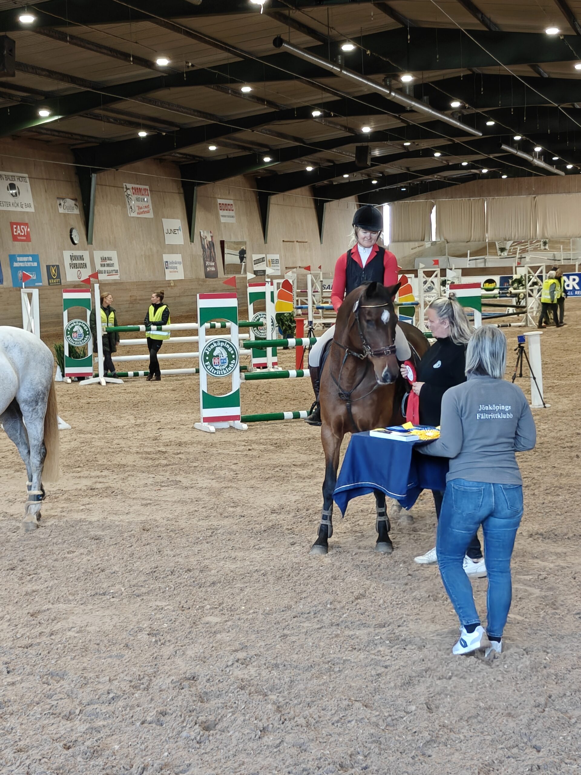 Så jag & Palle åkte till Jönköping för att starta mina och Idas klasser. Vi red 100cm avd. B och 110cm avd. A. Anledningen till att jag var anmäld till en avd. B och en avd. A var för att tanken bara var att åka dit & träna. Genom att rida dessa klasser så gjorde jag tävlingsdagen så kort som möjligt vilket kan vara skönt för alla inblandade när man ändå ”bara” åker dit för att träna.