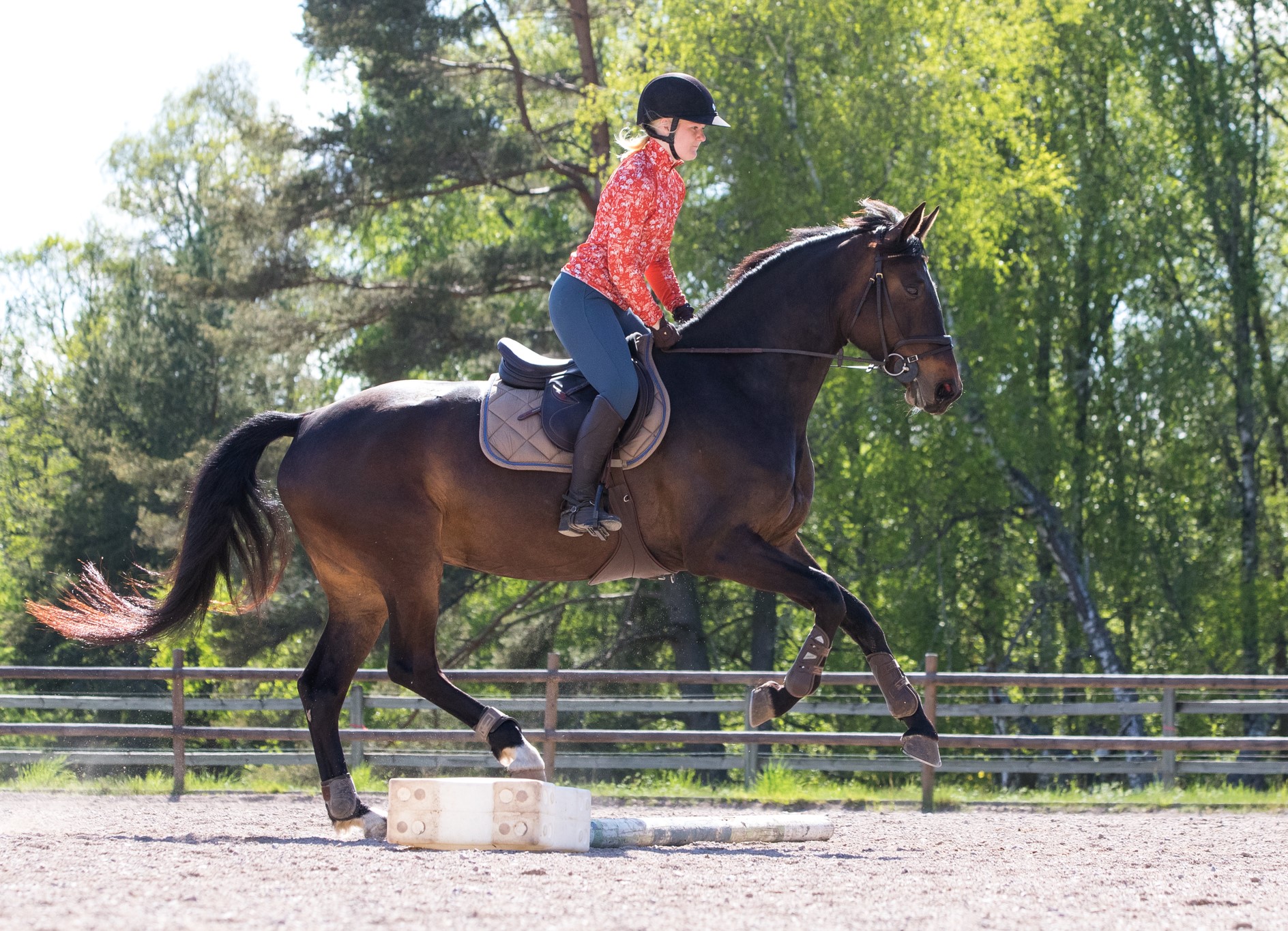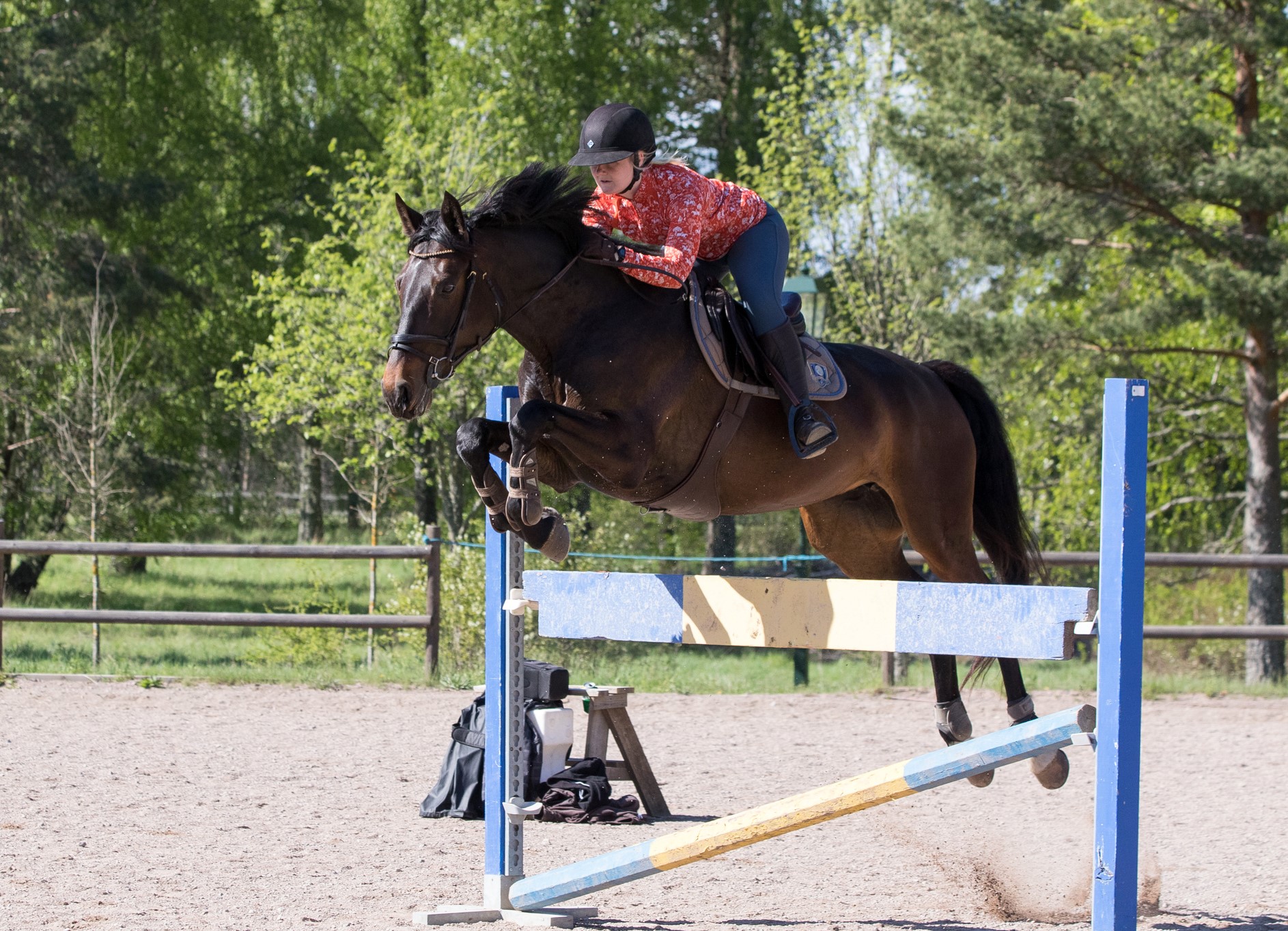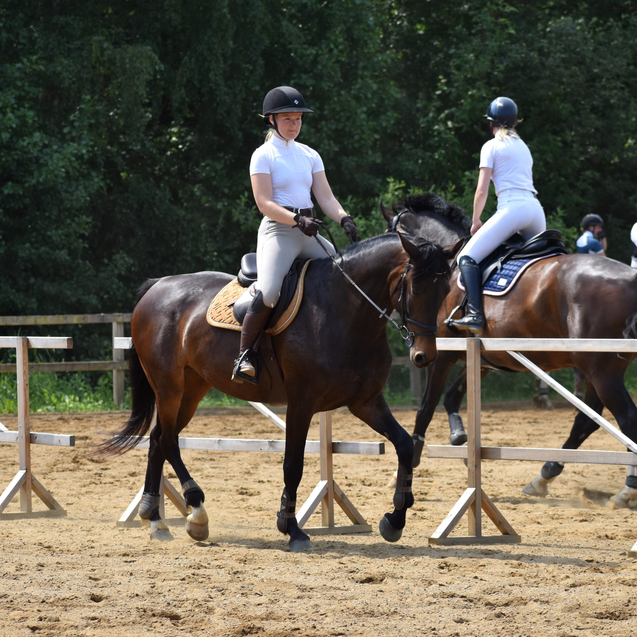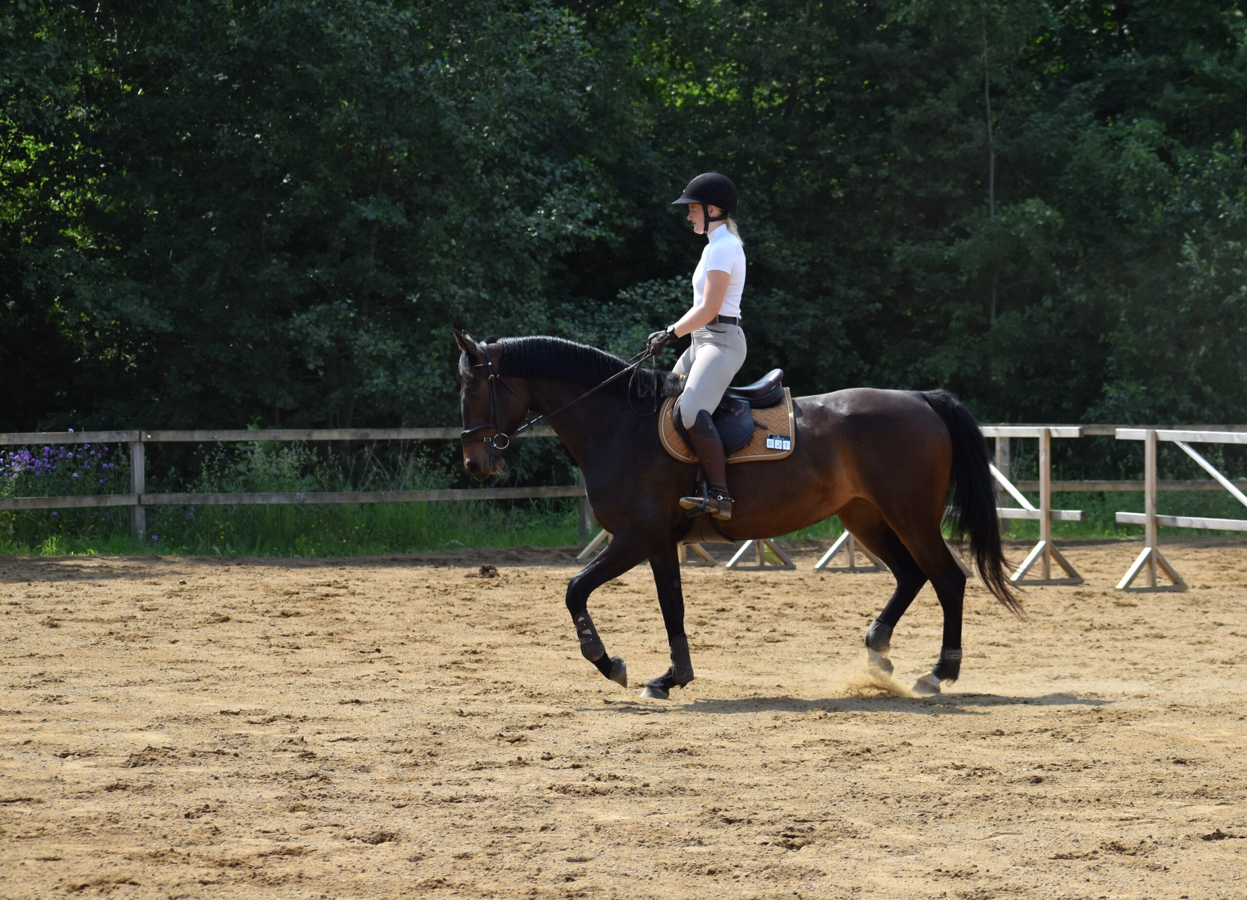 Tävlingarna drog inte igång förens i juni månad. Under våren passade jag & Ida-Holly på att träna våra sista hoppträningar för Jens samt träna terräng inomhus två gånger. Hon tog stora kliv framåt och vi hoppade enstaka hinder på 130-140cm. Vi var mer än redo för att tävlingarna skulle dra igång!