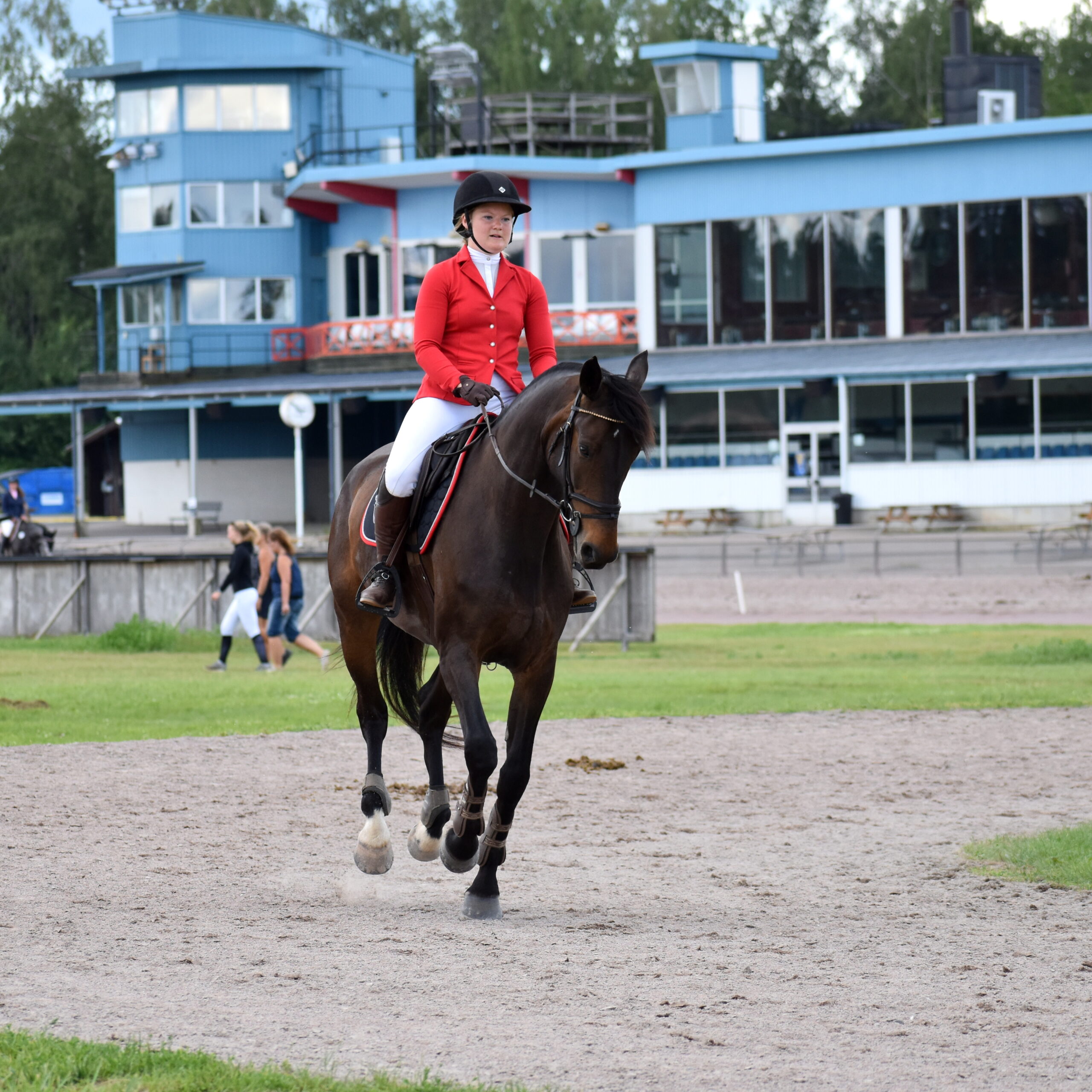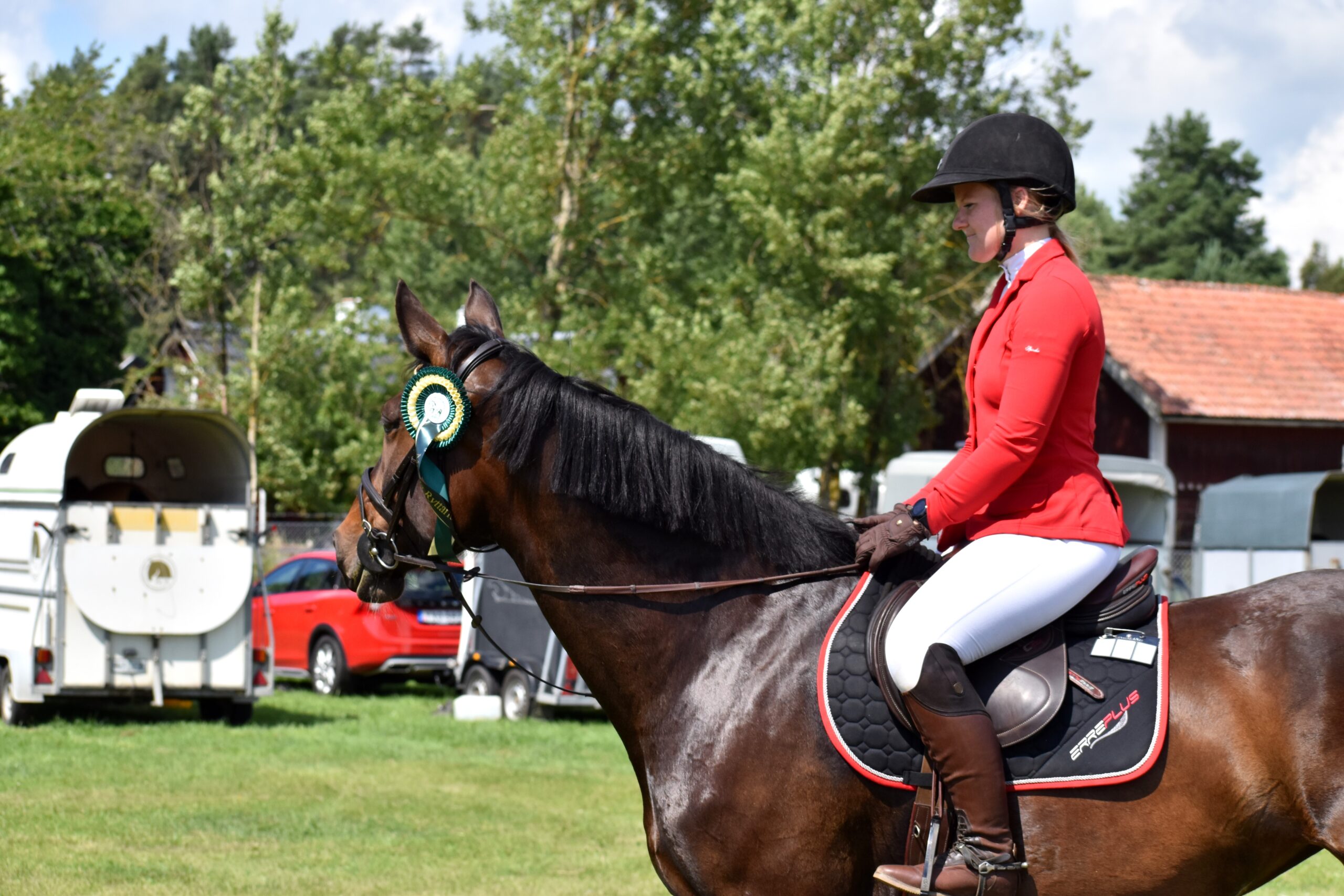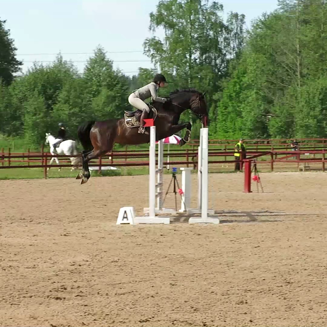 Vi gjorde årets första tävling i Aneby, då var det början av juni. Vi red 90cm på fredagen för att stämma av tävlingsnerverna. Det var ju länge sedan vi var ute sist. Ida-Holly kände sig som hemma, på söndagen åkte vi tillbaka för att starta 110cm. Kändes lite som att debutera på nytt. Vi hade bara ridit en 110-klass innan denna, och det var förra året. Eftersom att det varit tävlingsuppehåll så var det ca 8 månader sedan. Ida-Holly kändes verkligen hur fin somhelst och hoppade felfritt precis som hon även gjort i 90cm.