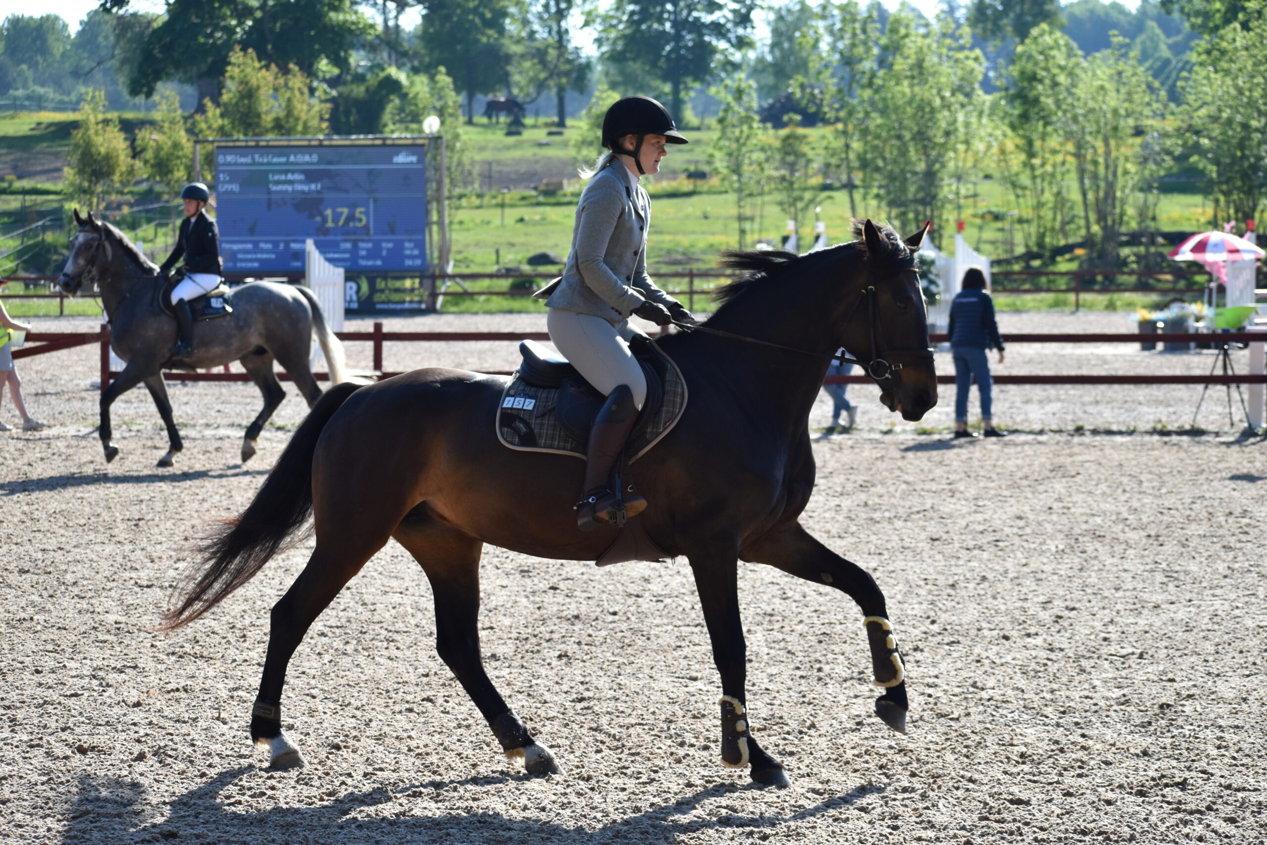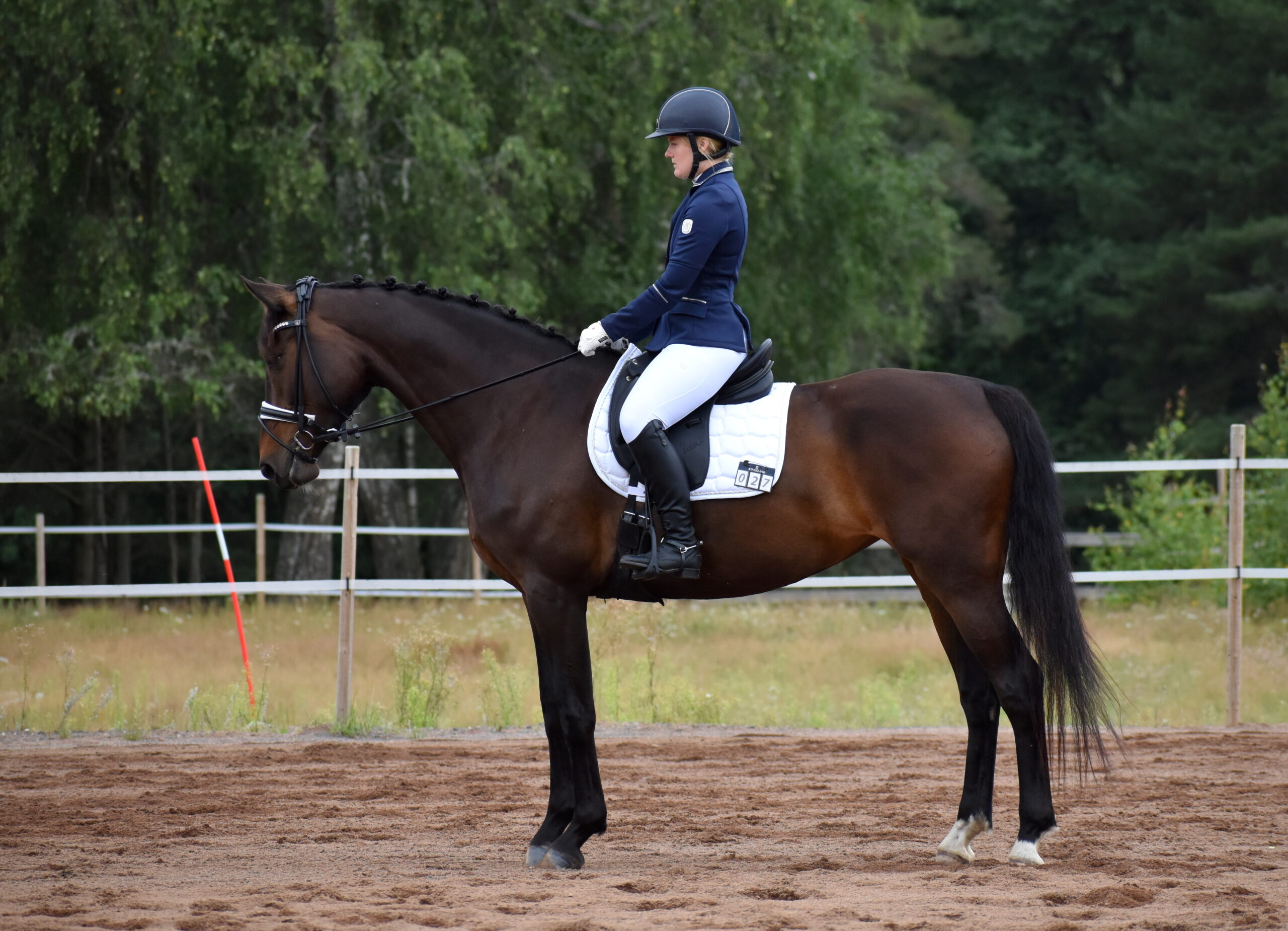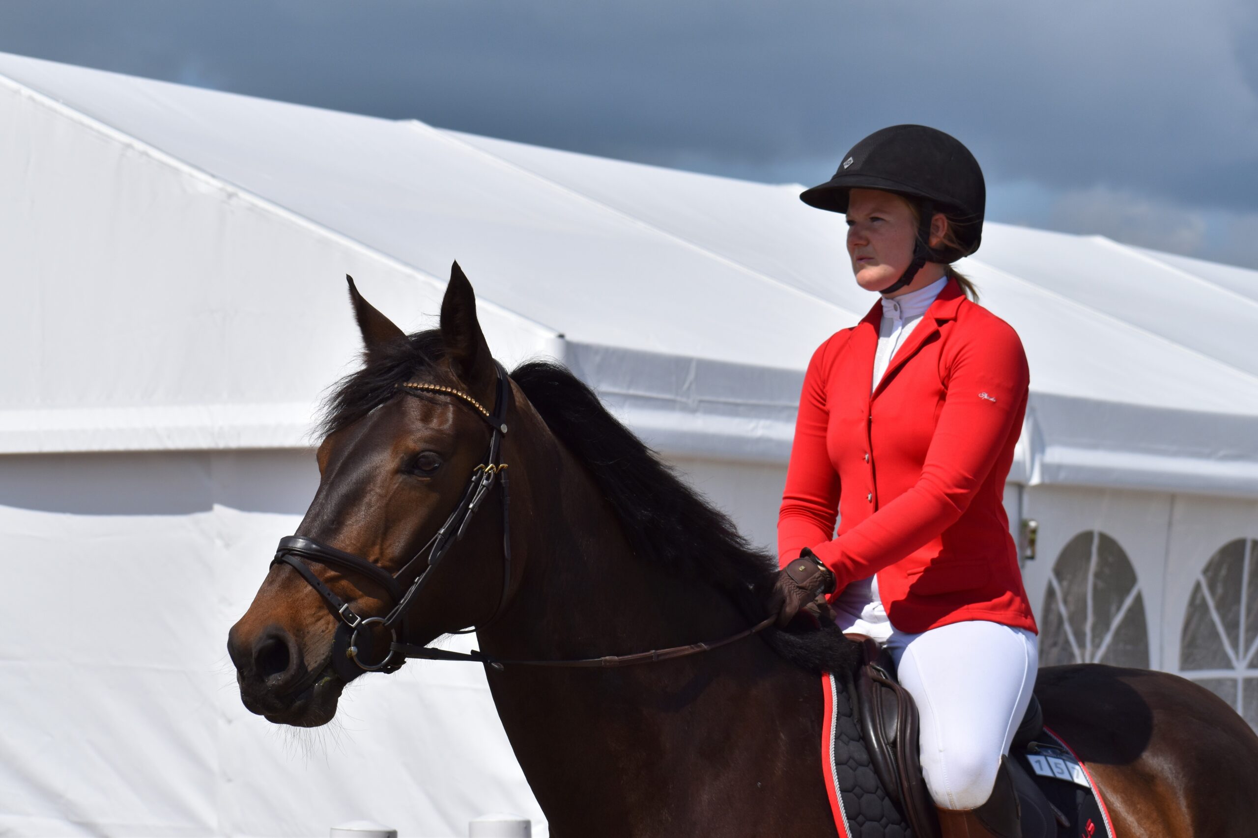 Jag & Merry inför start i LA:3. Han var suverän, dock ett omslag i den förvända galoppen som kostade för mycket för att vi skulle bli placerade.