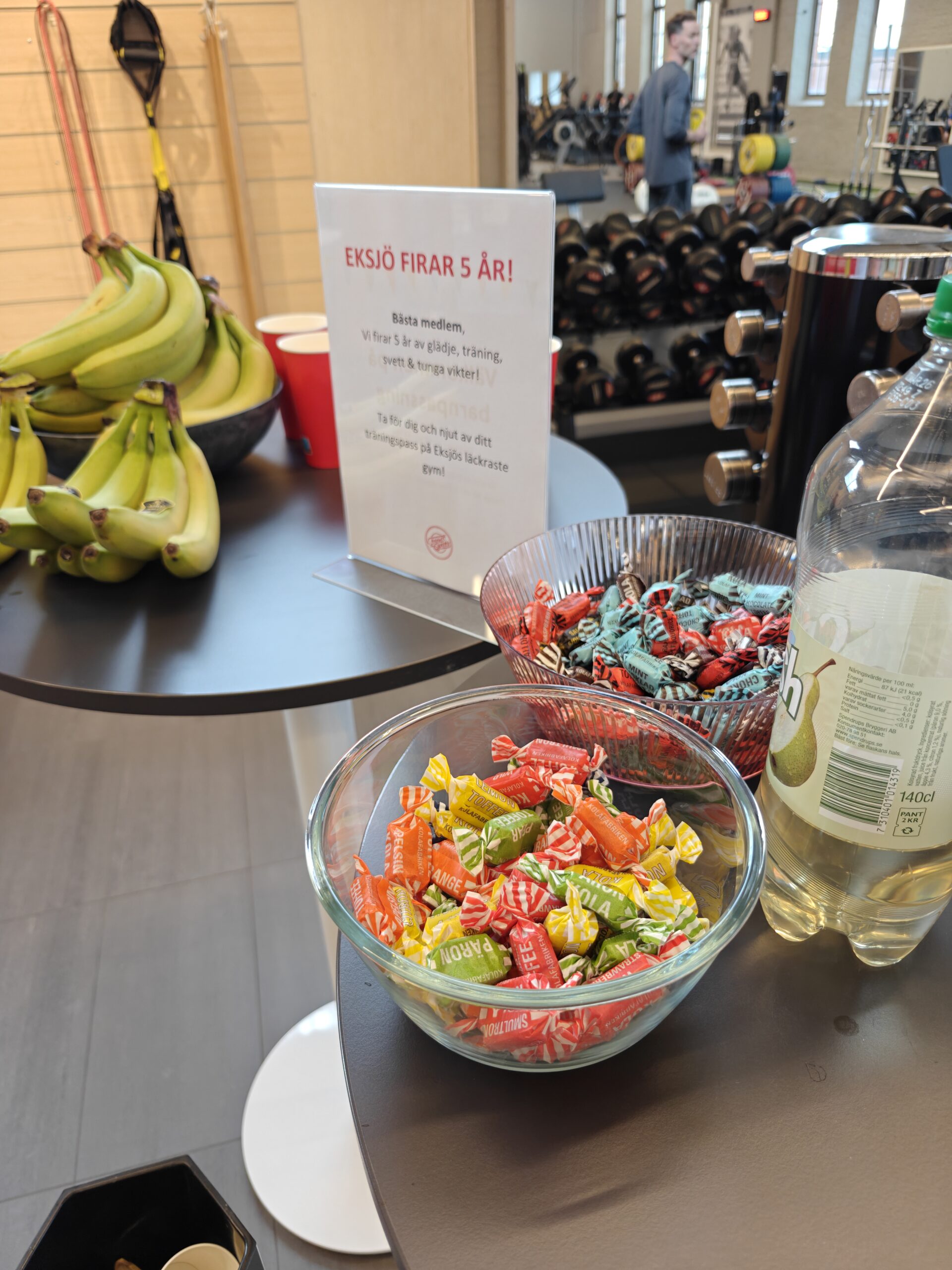 Idag var jag på 5-årsjubilieum på Friskis i Eksjö. Eller jag hann vara med lite på slutet, höll i träning under morgonen. Väldigt roligt. Jag har gymmat där sedan det öppnade. När de invigde så köade jag för att vara bland de första som kom in, de fick nämligen en goodiebag och ett fint erbjudande. Och jag har gymmat där sedan dess!🫶