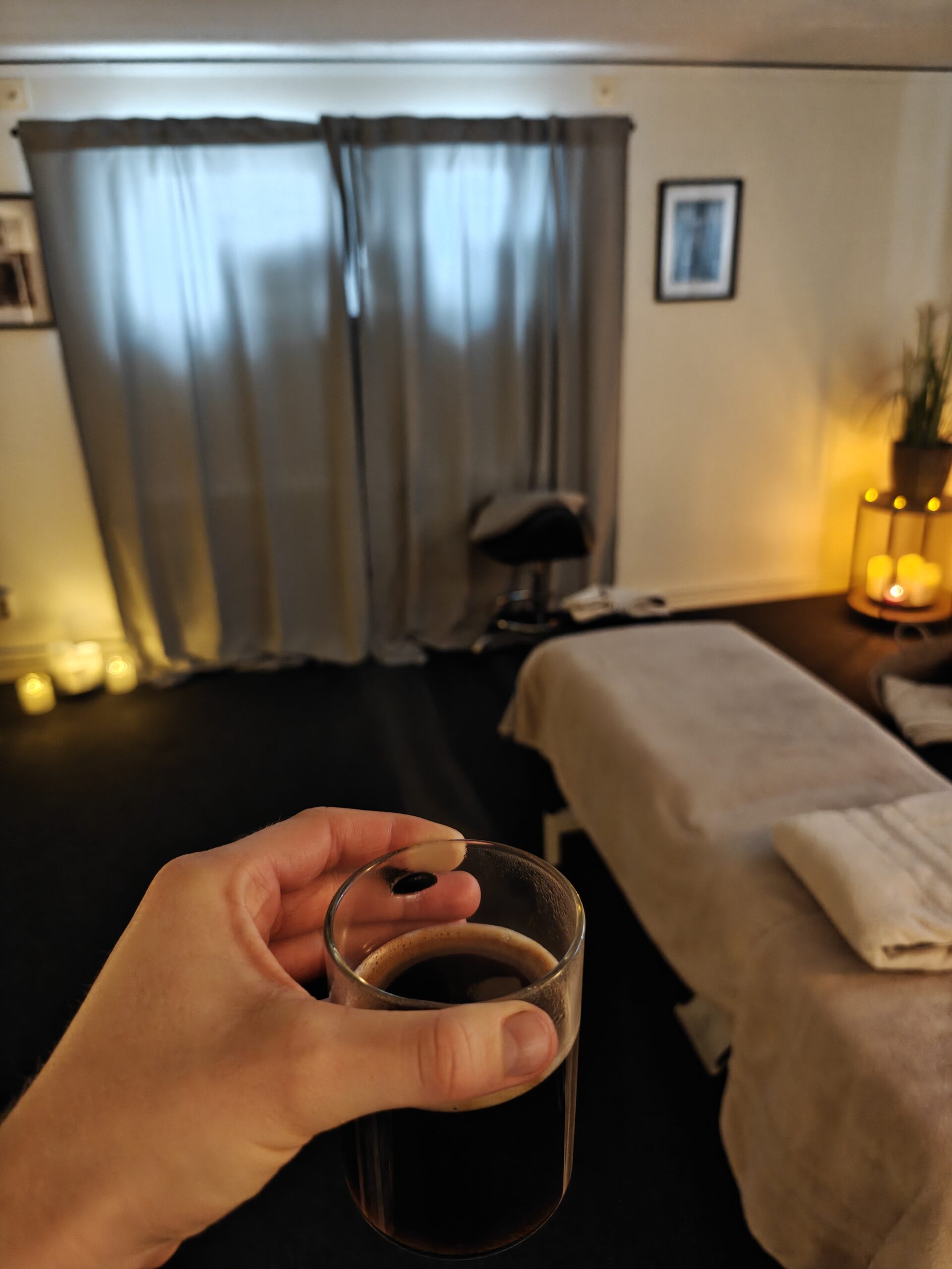 Hej frĂ„n massagestudionđ Har en liten paus innan det Ă€r dags för dagens sista kund. Sedan vĂ€ntar gymmet, och efter det stallsysslor.