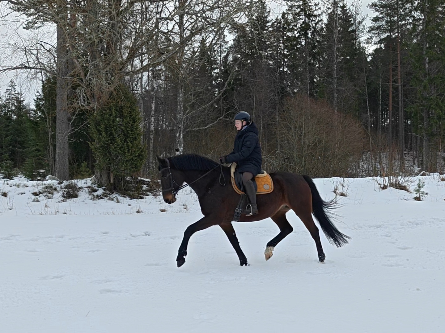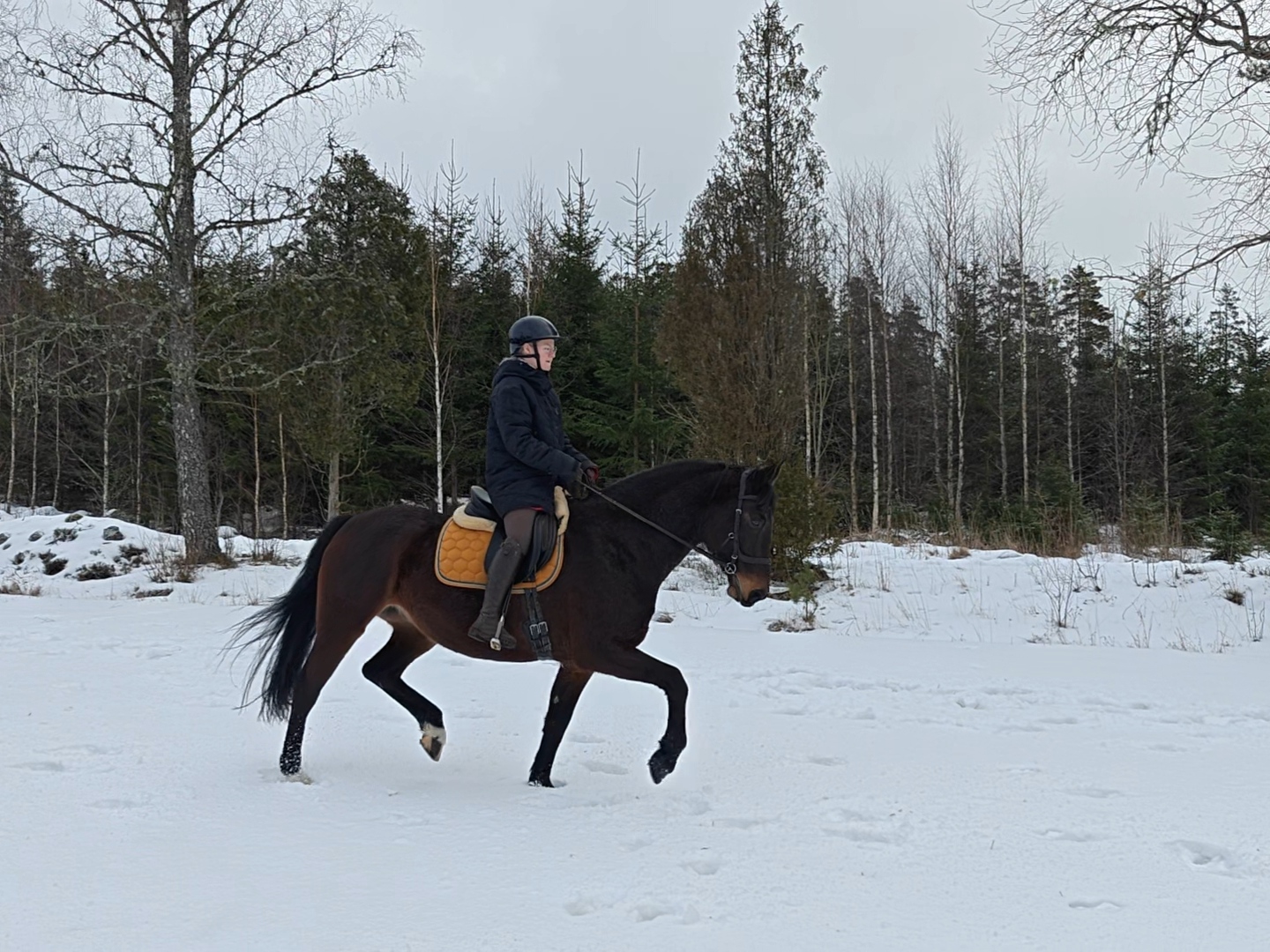 Förhoppningsvis hinner vi med ytterligare något pass innan de smälter för mycket (eller fryser på för den delen). Jag har alltid ridit mycket på fälten genom åren och det gör gott för konditionen. Så även om jag inte kunnat träna så mycket som de med ridhus så har jag alltid haft hästar med bra kondition tack vare allt ravlande på fälten i snön. Det är ett som är säkert, haha.