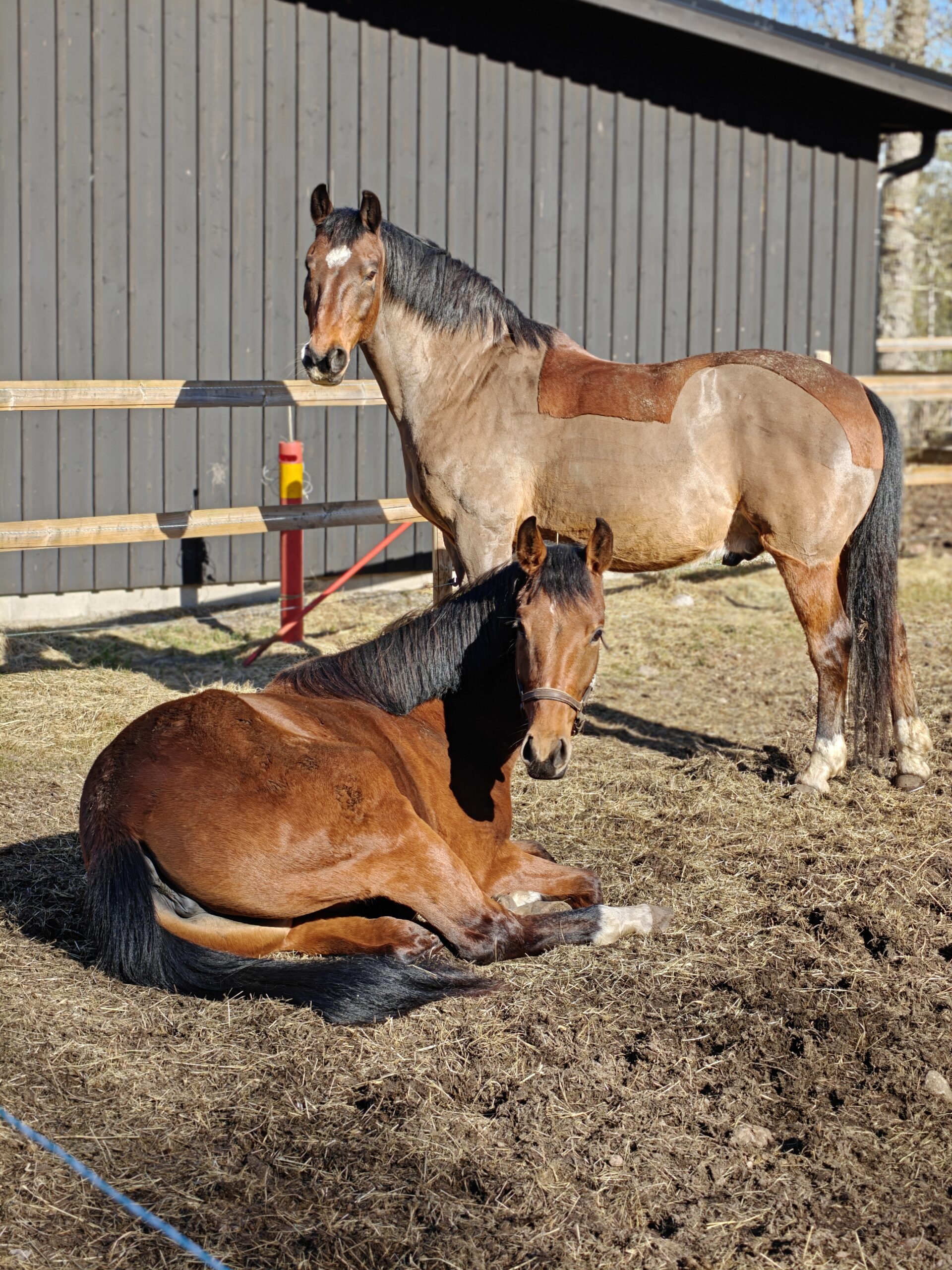 Båda hästarna skötte sig mycket fint. Palle & mamma gjorde studsen JÄTTEFINT. Sedan så märktes det att mamma var lite rostig på de andra hinderna. Lite fler sämre distanser än vanligt. Fler fel än rätt om jag ska vara helt ärlig, haha. Och så hinner hon inte riktigt komma in i det eller, vi hoppar inte många språng nu i början. Palle väntade dock riktigt fint på hinderna idag, markarbetet i veckan har gjort susen.