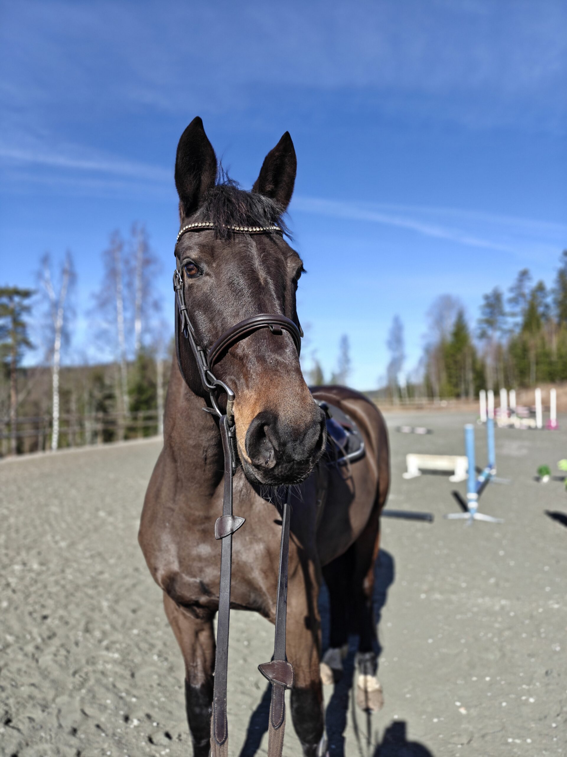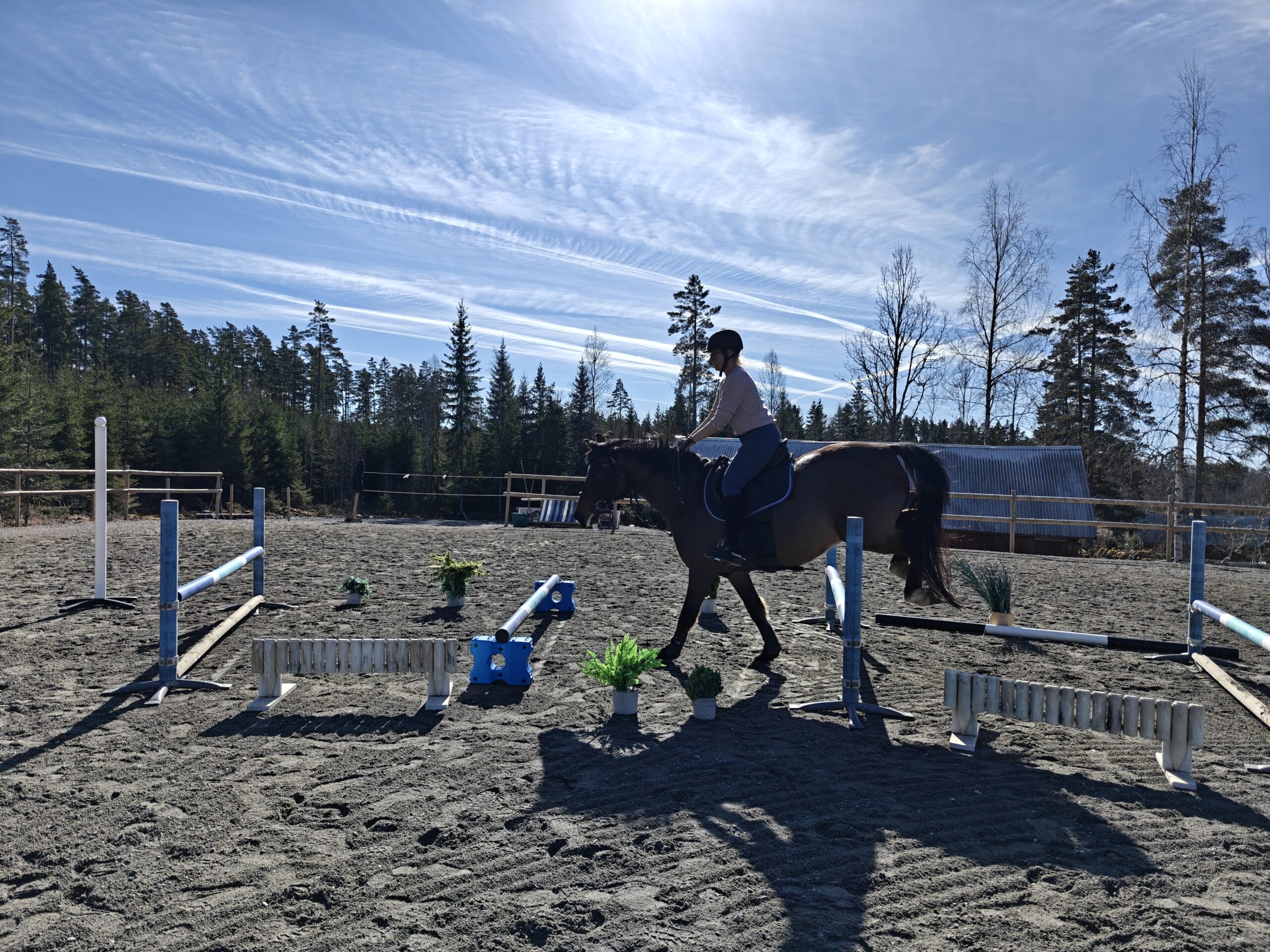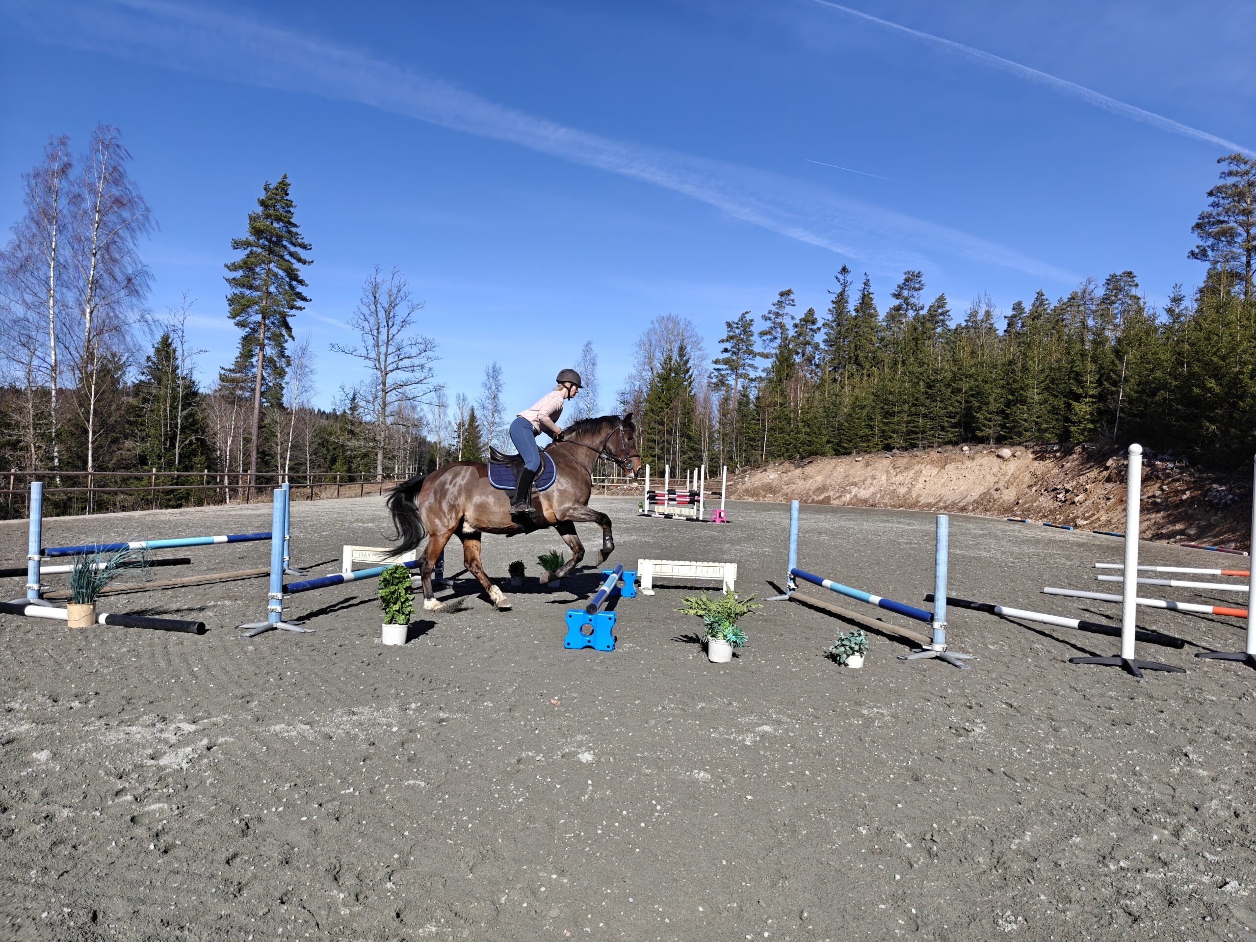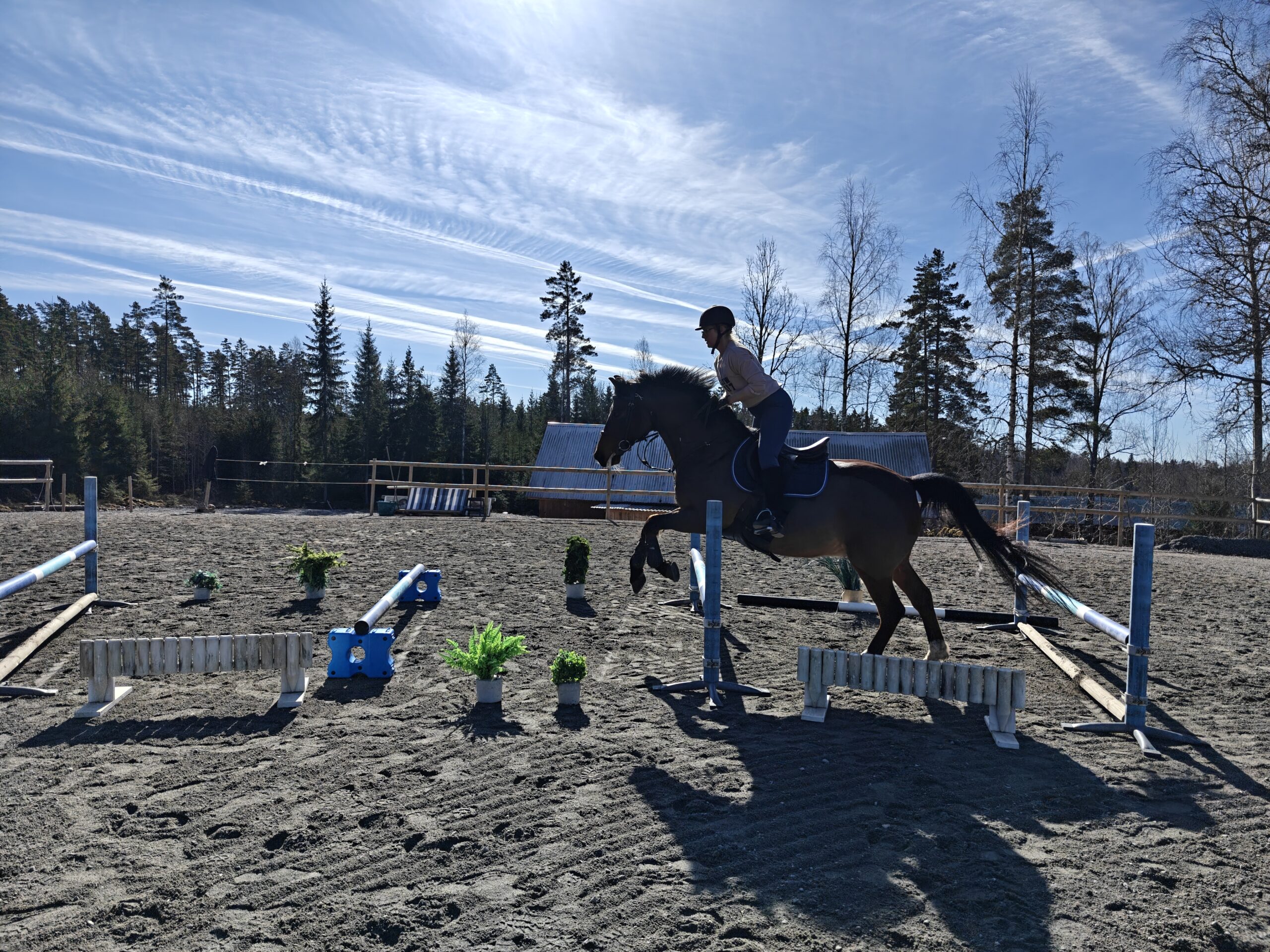 Ida kändes riktigt riktigt bra!!! Endast tredje gången över hinder i år och det höll en betydligt högre nivå än vad jag förväntat mig. Hon brukar dra ganska mycket till höger när vi hoppar efter vila, men det märktes ingenting. Att ta studsen i höger varv tyckte hon var lite jobbigt, men annars kändes hon riktigt stark & smidig. Jag blev så glad av att hoppa henne, det var sjukt kul! För mig var detta ett riktigt pangpass!