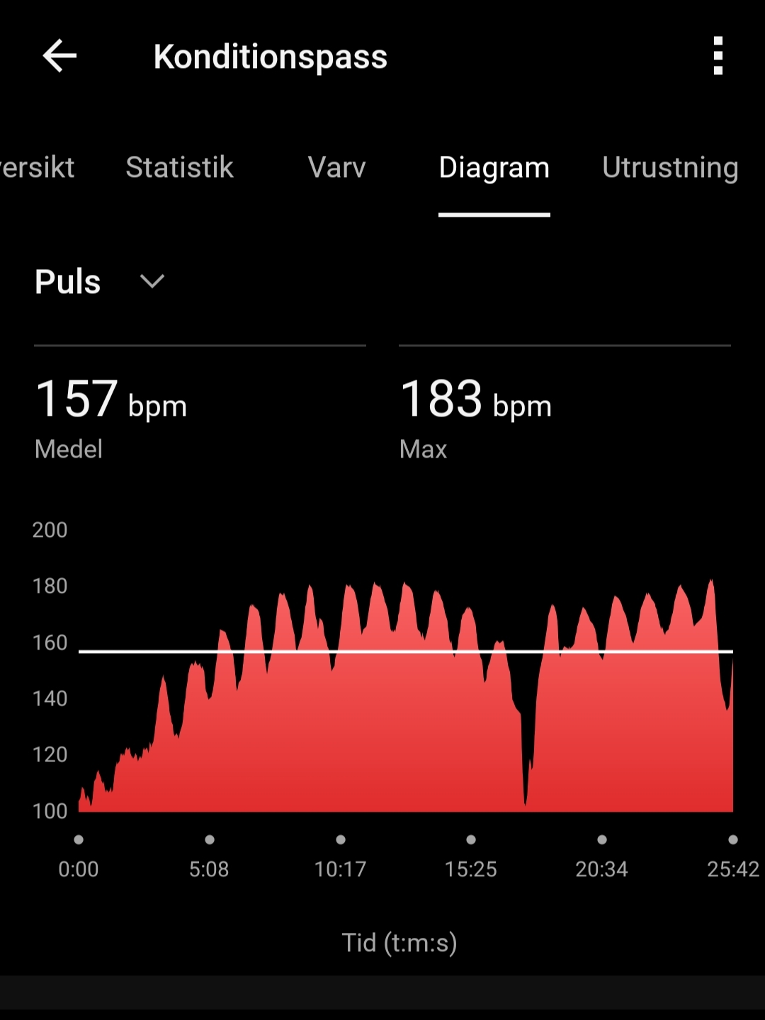 Trappade upp hastigheten på löpbandet för varje intervall. Och sedan jobbade jag mig successivt neråt igen, som i en pyramid. Fanns inget egentligt syfte med det, förutom att det fick mitt psyke att orka med det hela eftersom att det blir lättare & lättare på slutet, haha.